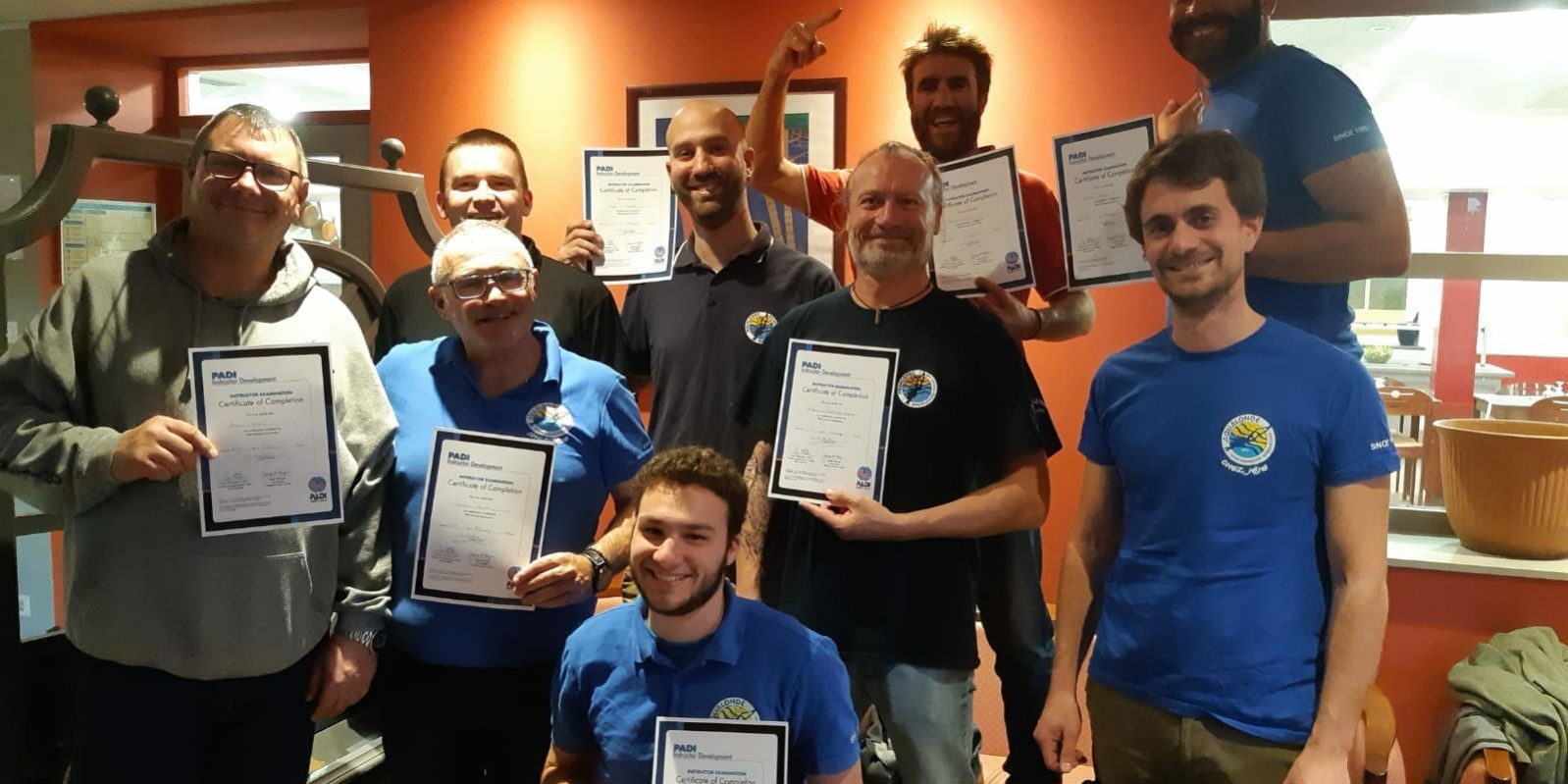 L’équipe d’Aqualonde vient de terminer avec brio sa formation pour enseigner la méthode PADI. Jéjé, Clément, Marc, Philippe et Alveen viennent d’être certifiés “Open Water Instructor PADI” après avoir passé leur examen qu’ils ont tous réussi avec succès! Vous avez dû voir de nouveaux prénoms, mais qui sont t-ils?