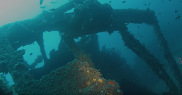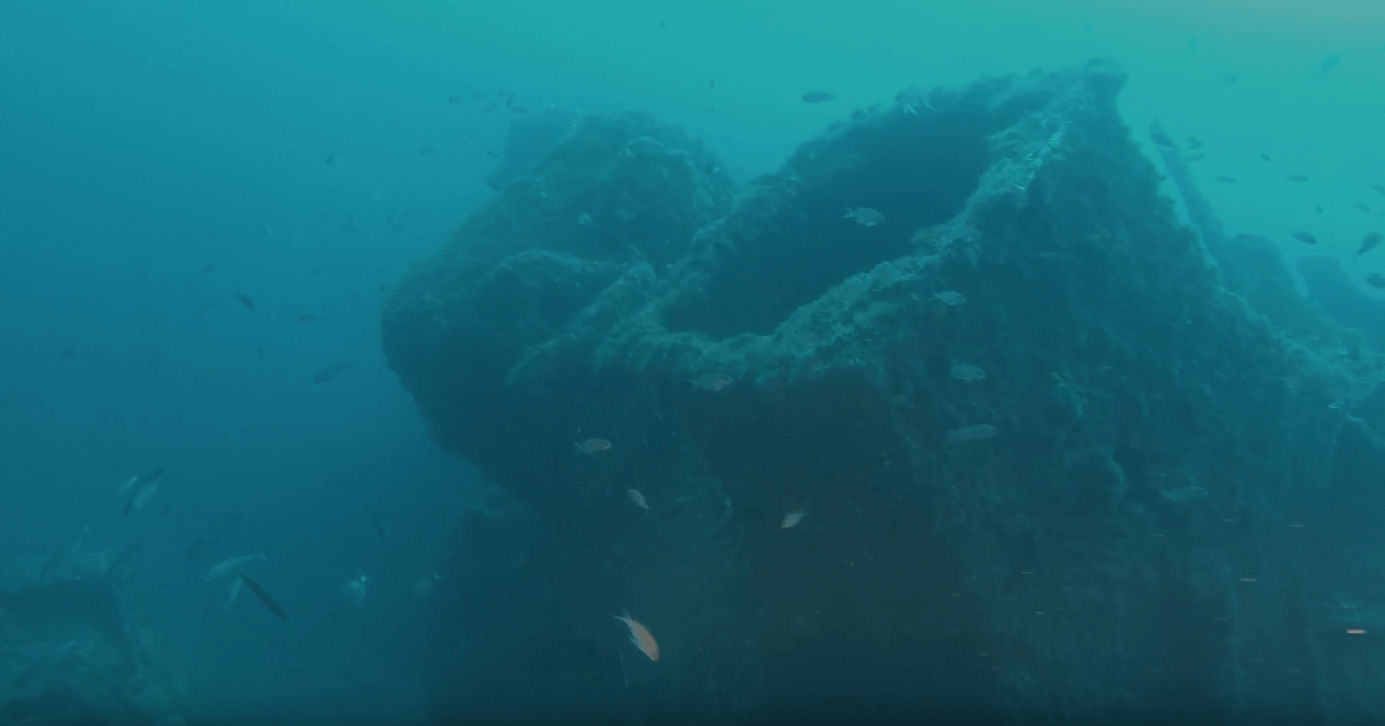 La partie centrale du navire est affaissée et abîmée. Seules les machines sont encore reconnaissables. La poupe à 32 m quant à elle est presque détruite. Il en subsiste seulement l’arbre d’hélice, hélice avec une pale seulement, et l’olive du gouvernail. Le deuxième arbre n’est pas visible. Le pont arrière repose à quelques mètres sur le sable.